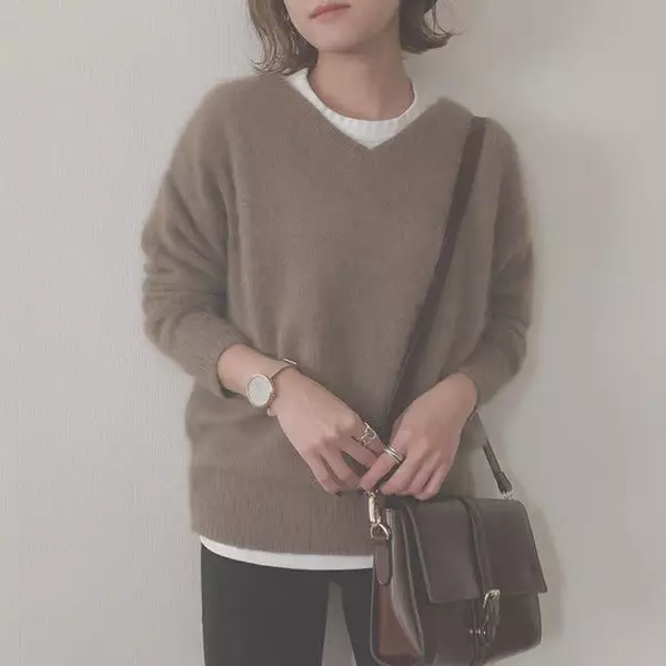Vネックニットコーデ24選 レディース19 重ね着のコツやカラー別の着こなしのヒントなど Oggi Jp Oggi Jp